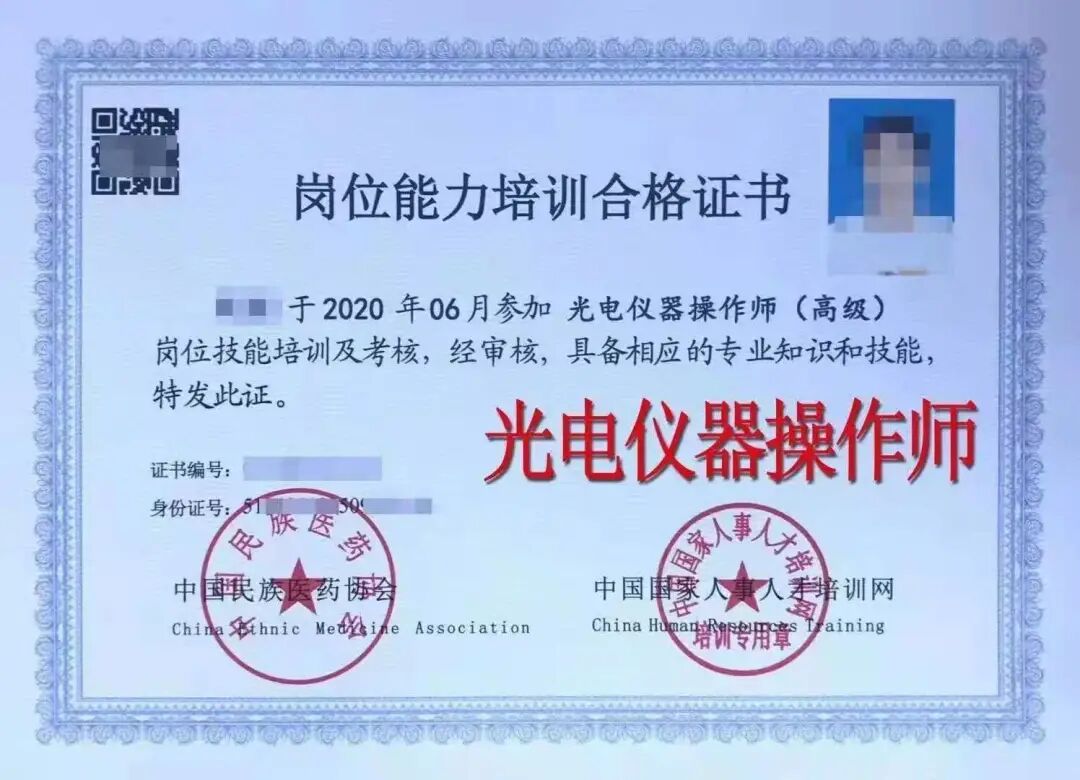 陈康所在的公司不但卖高仿美容设备,还卖证书。他发来一张「岗位能力培训合格证书」模板,证书上标明「光电仪器操作师」,两行文字提示,「某某于某年某月参加光电仪器操作师(高级)岗位技能培训及考核。经审核,具备相应的专业知识和技能,特发此证」。