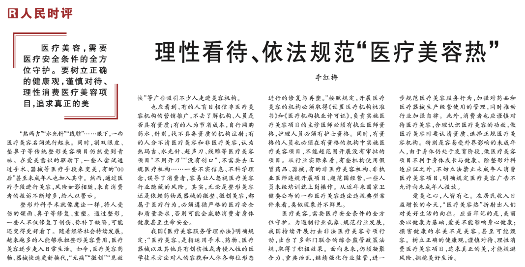 ▲人民日报时评《理性看待、依法规范「医疗美容热」》